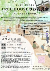 - TREE HOUSEのお花見会🌸こいこい春らんまん🌸 TREE HOUSEのお花見会をひらきます! ツリーハウスと桜の季節。 あたたかい春の空気の中で、のんびり集まっておしゃべりしたり、遊んだり、読書したり✨ それぞれの“好きな過ごし方”でゆるっと楽 […]
