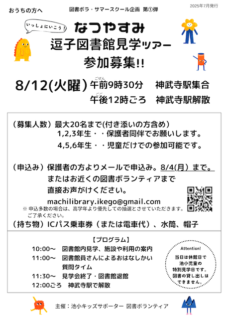 今年は、図書ボランティア サマースクール企画として2つ イベントを開催いたします。